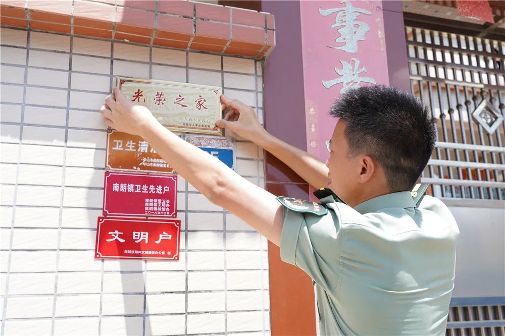 7月14日上午,南朗鎮(zhèn)武裝部、退役軍人服務(wù)中心為鎮(zhèn)內(nèi)6戶(hù)現(xiàn)役軍人家屬頒發(fā)“光榮之家”牌匾,為他們掛上承載著軍人榮耀的光榮牌。