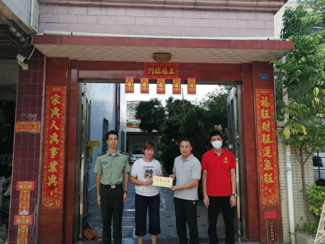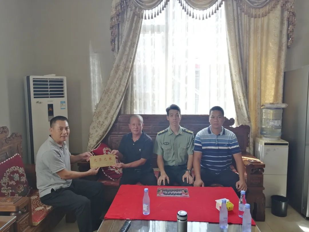 為進一步鞏固和發(fā)展軍政軍民團結(jié),弘揚新時代擁軍優(yōu)屬的優(yōu)良傳統(tǒng),推進軍人榮譽體系建設(shè),營造關(guān)愛軍人的濃厚社會氛圍,7月15日上午,阜沙鎮(zhèn)武裝部、退役軍人服務(wù)中心聯(lián)合走訪今年入伍的6名新兵家屬,為其家庭懸掛“光榮之家”門牌,送上入伍電子相冊,了解新兵在部隊的訓(xùn)練、學(xué)習(xí)和生活情況,增強軍屬家庭的榮譽感和自豪感,讓他們切實感受到黨和政府的關(guān)愛和溫暖。 在新兵周志偉家中,其父親周錦元自豪地說:“雖然非常舍不得志偉離開我們,但是送他到部隊鍛煉,為國家作貢獻,心里還是很高興的,也非常自豪。今天你們來給我家掛光榮牌、送相冊,我們?nèi)倚睦锱?,非常感謝黨和政府對我們的關(guān)心。” 一人參軍,全家光榮 一塊刻著“光榮之家”的小小牌匾 對軍屬家庭來說卻是一份特殊的“禮物” 牌匾雖小