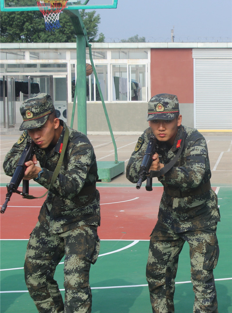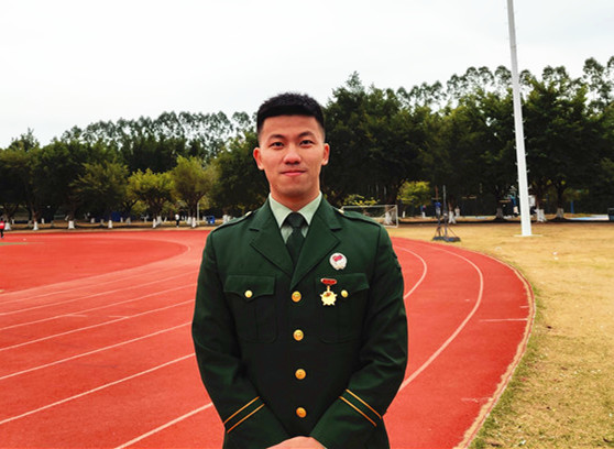 “小時(shí)候,我看過一部名為《烈火雄心》的電視劇,講的是消防員奮勇?lián)尵壬?,以濃煙考?yàn)斗志、以烈火洗煉人生的故事,那時(shí)我就對(duì)執(zhí)行任務(wù)類型的職業(yè)非常向往。再加上男生打小對(duì)飛機(jī)、槍支武器都有一種特殊的感覺,那時(shí)候就在想,有機(jī)會(huì)一定要去部隊(duì)歷練一番試試?!比尾敻嬖V記者,大二那年,他終于夢(mèng)圓軍營(yíng),服役于武警河南總隊(duì)某中隊(duì)?!?個(gè)月的新兵連非常充實(shí),隊(duì)列訓(xùn)練、拉練、長(zhǎng)途行軍......讓我印象深刻的是在行軍過程中,不管去到什么地方,只要一身軍裝在身,當(dāng)?shù)氐男∨笥讯紩?huì)朝我敬禮,老百姓也特別友善,讓我感到非常自豪,這種軍民魚水情讓我感覺非常好?!?/p> 服役期間,因表現(xiàn)突出,任伯聰被評(píng)為“優(yōu)秀義務(wù)兵”,于2019年退出現(xiàn)役。離開部隊(duì)后,他重返大學(xué)校園完成學(xué)業(yè),并加入了學(xué)校的國防教育服務(wù)中心,為學(xué)校的征兵宣傳工作奔走發(fā)聲。在校期間,任伯聰從未忘記自己曾經(jīng)是一名軍人?!拔覉?jiān)持每天長(zhǎng)跑10公里,練習(xí)單杠,也一直有按照之前部隊(duì)的訓(xùn)練標(biāo)準(zhǔn)來保持鍛煉?!?/p>  左一為任伯聰。