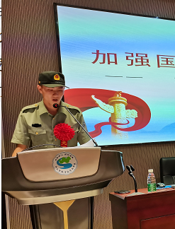 隨后,退役軍人事務(wù)中心陳偉樂開展了“加強(qiáng)國防教育 強(qiáng)化國防觀念”主題宣講活動,他從提高警惕、勿忘國恥、崇尚軍人、樹立軍魂等方面強(qiáng)調(diào)師生們要加強(qiáng)國防觀念。