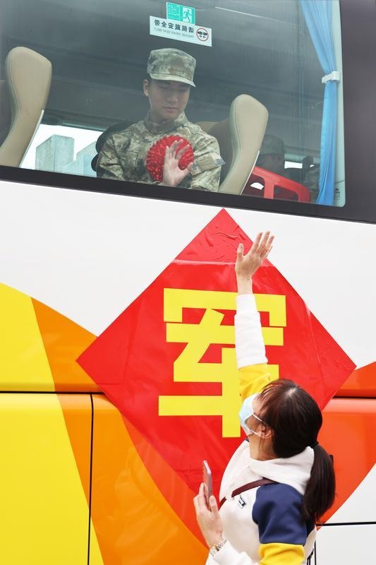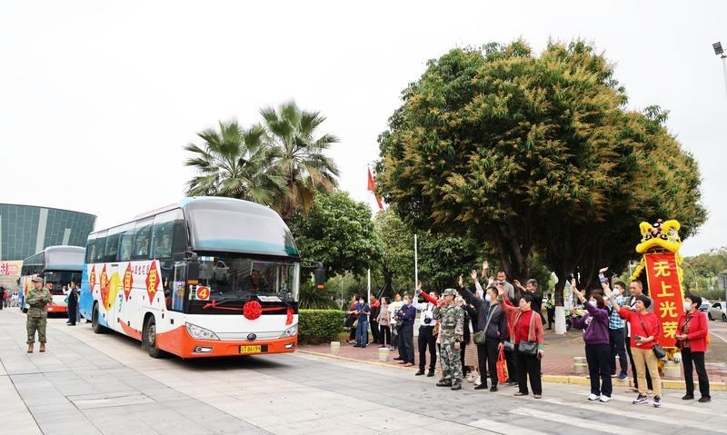 東區(qū)街道新兵潘子晨的母親鄭紅麗深情囑咐道:“兒行千里母擔(dān)憂。你們此行遠(yuǎn)離家鄉(xiāng)和親人,一定要銘記父老鄉(xiāng)親對你們的殷殷囑托,無論是在邊疆巡邏、高山上練兵,還是為祖國站崗,希望你們在部隊(duì)里傳承中山人敢為人先的闖勁,沖鋒在前,勇?lián)笕危橹猩饺嗣駹幑馓聿剩∥覀儗槟銈儬I造一個穩(wěn)固的‘大后方’,時刻支持你們?!?/p> 滿載著新兵的客車徐徐駛離。記者 文波 攝