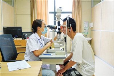 醫(yī)生對(duì)應(yīng)征青年進(jìn)行視力檢查。記者 易承樂(lè) 攝