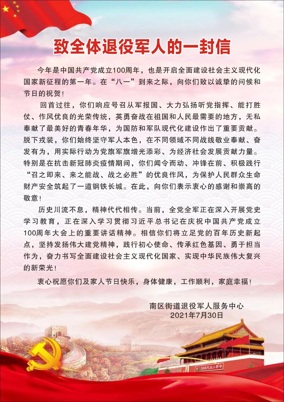 在“建軍節(jié)”來臨之際,南區(qū)街道開展一系列擁軍優(yōu)屬活動,懷著崇敬之心、感恩之心,向優(yōu)撫對象和退役軍人、現役軍人家屬表達關懷和謝意,推動軍民共建!