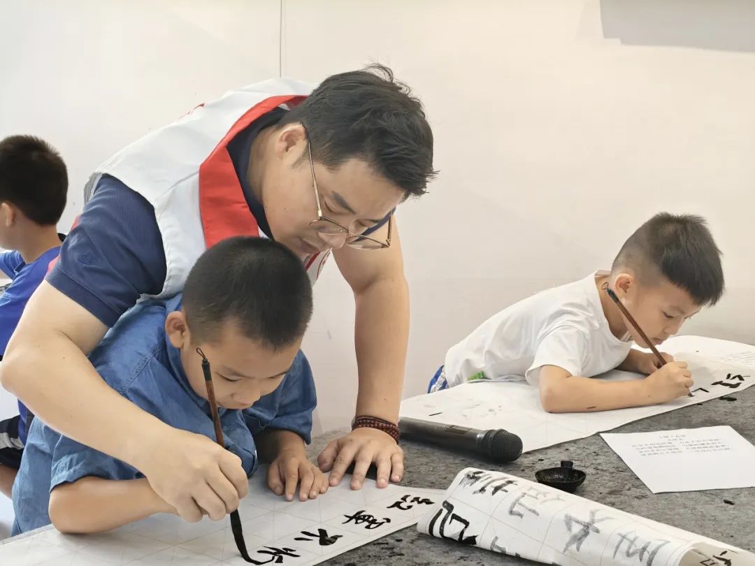 退役軍人走進(jìn)暑期夏令營(yíng)教孩子們寫(xiě)書(shū)法