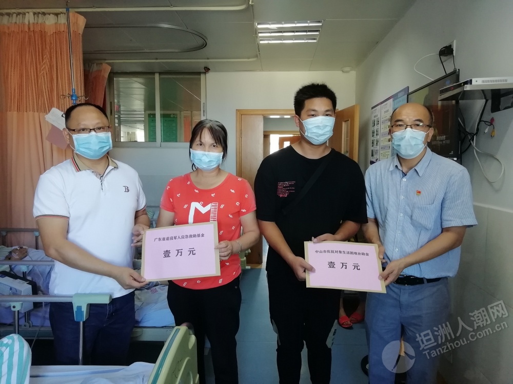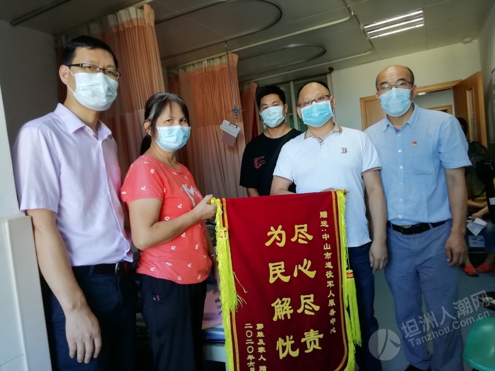 近日,中山市首個(gè)應(yīng)急救助資金申請(qǐng)已通過省退役軍人事務(wù)廳審核,坦洲籍退役軍人郭叔獲得了應(yīng)急救助資金1萬元。該筆應(yīng)急救助資金于日前由省退役軍人事務(wù)廳按照規(guī)定程序撥付到申請(qǐng)人個(gè)人賬戶。 6月18日,中山市、坦洲鎮(zhèn)兩級(jí)退役軍人服務(wù)中心及坦洲社會(huì)事務(wù)局相關(guān)負(fù)責(zé)人一行到坦洲醫(yī)院對(duì)郭叔進(jìn)行慰問,告知他申請(qǐng)的應(yīng)急救助資金已由省退役軍人事務(wù)廳撥付到賬,叮囑他要聽從醫(yī)生的囑咐,積極配合康復(fù)治療,樹立起戰(zhàn)勝疾病的勇氣和信心。郭叔家人特地制作了一面錦旗送到中山市退役軍人服務(wù)中心主任張波手中,由衷表達(dá)了對(duì)市、鎮(zhèn)、村各級(jí)退役軍人服務(wù)中心(站)的感激之情。