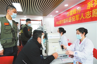 ▲醫(yī)務(wù)人員為退役軍人開展眼健康服務(wù)。(資料圖)