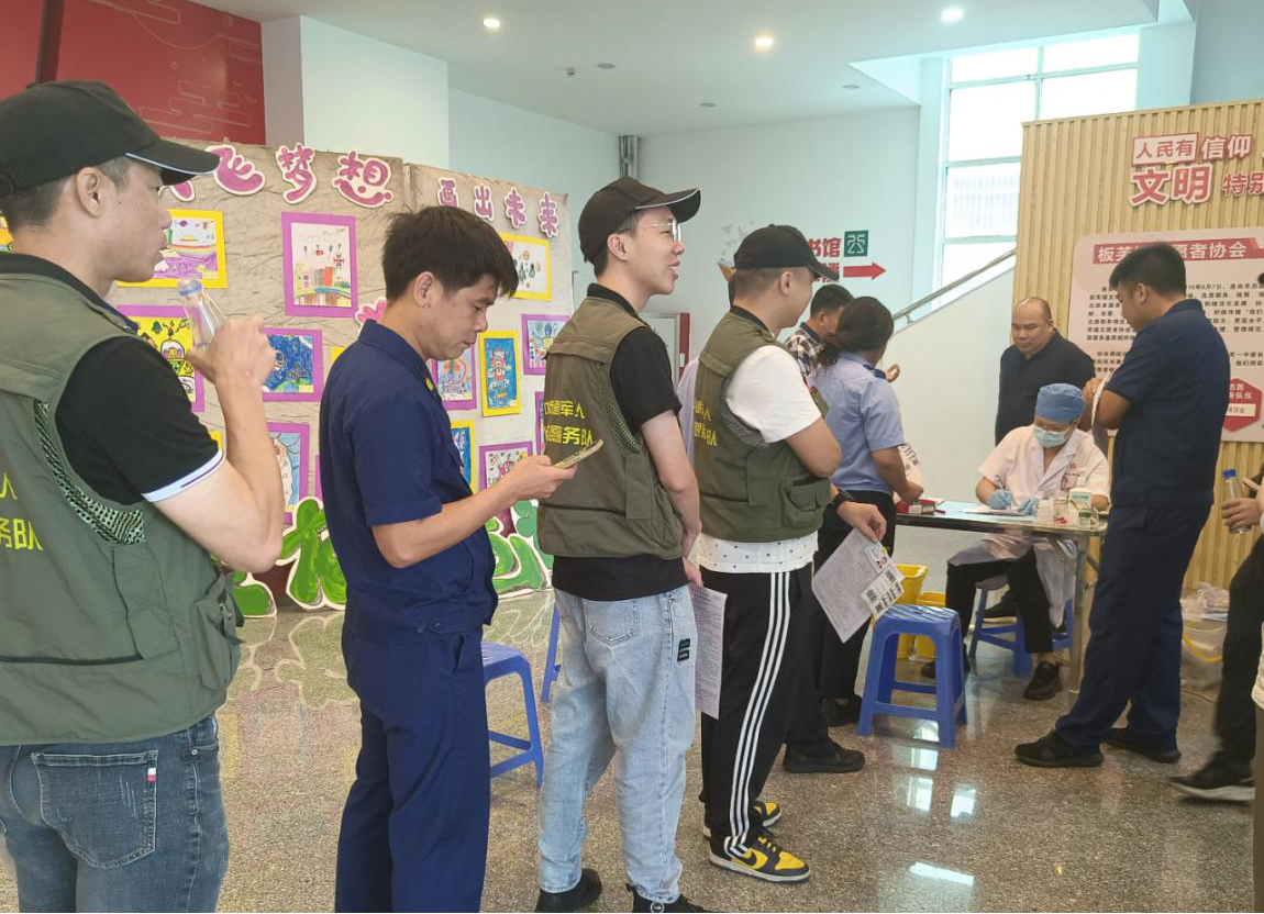 7月3日至4日,板芙鎮(zhèn)連續(xù)兩天在鎮(zhèn)黨群服務(wù)中心開(kāi)展2023年無(wú)償獻(xiàn)血活動(dòng)。板芙鎮(zhèn)退役軍人服務(wù)中心積極響應(yīng)號(hào)召,組織發(fā)動(dòng)30余名退役軍人紅旗志愿服務(wù)隊(duì)隊(duì)員參與獻(xiàn)血8000毫升,以實(shí)際行動(dòng)傳遞希望,奉獻(xiàn)愛(ài)心。  板芙鎮(zhèn)退役軍人紅旗志愿服務(wù)隊(duì)隊(duì)員排隊(duì)等候無(wú)償獻(xiàn)血。