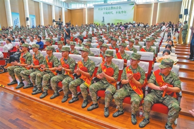 身著迷彩服,佩戴光榮花,一張張青春臉龐上滿是憧憬之情。金秋九月,中山又一批有志青年背上行囊,意氣風(fēng)發(fā)奔赴軍營(yíng)。 今年下半年,全市共有3000多名適齡青年報(bào)名應(yīng)征,經(jīng)過(guò)體檢、政治考核、役前教育等層層選拔,共征集了300多名男兵,在讀大學(xué)生征集比例、大學(xué)畢業(yè)生征集比例再創(chuàng)歷史新高,圓滿完成了上級(jí)賦予的任務(wù)。 “希望你們不管在何處服役,是哪個(gè)兵種,都銘記父老鄉(xiāng)親的殷殷囑托,在部隊(duì)大力弘揚(yáng)中山‘敢想敢闖、敢為人先’的精神,展示出‘中山兵’的良好精神風(fēng)貌,沖鋒在前、勇?lián)笕?、奮斗奉獻(xiàn),努力為中山增光添彩。祝新戰(zhàn)友們一路順風(fēng),刻苦訓(xùn)練,能打勝仗,捷報(bào)頻傳!”在出席中山2023年下半年新兵歡送儀式時(shí),中山市征兵工作領(lǐng)導(dǎo)小組副組長(zhǎng)、中山軍分區(qū)大校司令員李云濤鄭重地說(shuō)。 來(lái)自三鄉(xiāng)鎮(zhèn)的新兵代表馮林研究生畢業(yè)于青島農(nóng)業(yè)大學(xué),他鄭重承諾:“到部隊(duì)后我們一定牢記使命,安心服役、刻苦訓(xùn)練、嚴(yán)守紀(jì)律、積極進(jìn)取,為祖國(guó)和平安寧扛好槍、站好崗,不辜負(fù)國(guó)家和家鄉(xiāng)人民的期望!” 敲鑼打鼓,列隊(duì)歡迎。一場(chǎng)歡送儀式,就是一次生動(dòng)的國(guó)防教育。歡送儀式上,除了以東鳳鎮(zhèn)新兵張學(xué)培家庭“三代從軍”事跡為背景創(chuàng)作的原創(chuàng)詩(shī)歌朗誦《致敬夢(mèng)想的接力》、男聲四重唱《強(qiáng)軍戰(zhàn)歌》等文藝表演,新兵還展示了軍體拳,動(dòng)作干凈利落整齊,儼然已有軍人的模樣?,F(xiàn)場(chǎng),省級(jí)非物質(zhì)文化遺產(chǎn)起灣金龍展演也來(lái)助陣,只見(jiàn)金龍起舞、鑼鼓喧天,熱鬧非凡。 兒行千里母擔(dān)憂,歡送現(xiàn)場(chǎng),不少家長(zhǎng)熱淚盈眶,拿起手機(jī)記錄著孩子入伍的珍貴畫面,送兵車緩緩啟動(dòng),家長(zhǎng)們的目光卻始終不肯轉(zhuǎn)移。一路跟隨,久久不肯離去…… 登上大巴車,新兵們揮一揮手:“再見(jiàn),中山!軍營(yíng),我來(lái)啦!” 記者 黃藝杰 張倩 通訊員 黃嘉裕 圖編 文智誠(chéng) ◆編輯:龍慧◆二審:蘇鵬蘊(yùn)◆三審:周亞平 |
