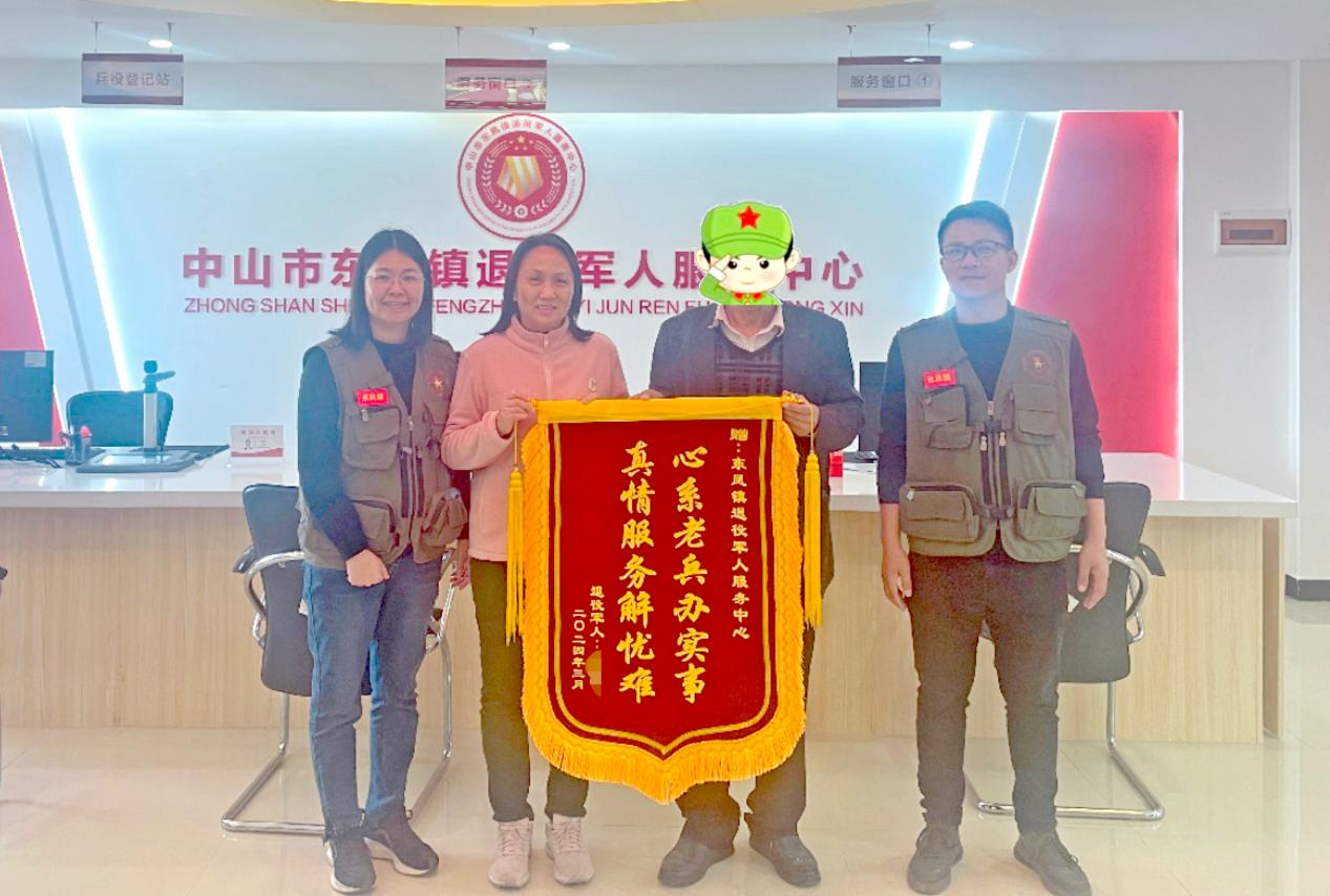 3月19日,中山市東鳳鎮(zhèn)小瀝社區(qū)退役軍人朱叔懷著感激之情,將一面印有“心系老兵辦實事,真情服務解憂難”的錦旗送到東鳳鎮(zhèn)退役軍人服務中心,感謝該中心幫助其分別成功申請到廣東省應急救助資金和中山市臨時困難補助,解決了他的燃眉之急,緩解了家庭困難。  退役軍人朱叔將一面印有“心系老兵辦實事,真情服務解憂難”的錦旗送到東鳳鎮(zhèn)退役軍人服務中心。通訊員供圖