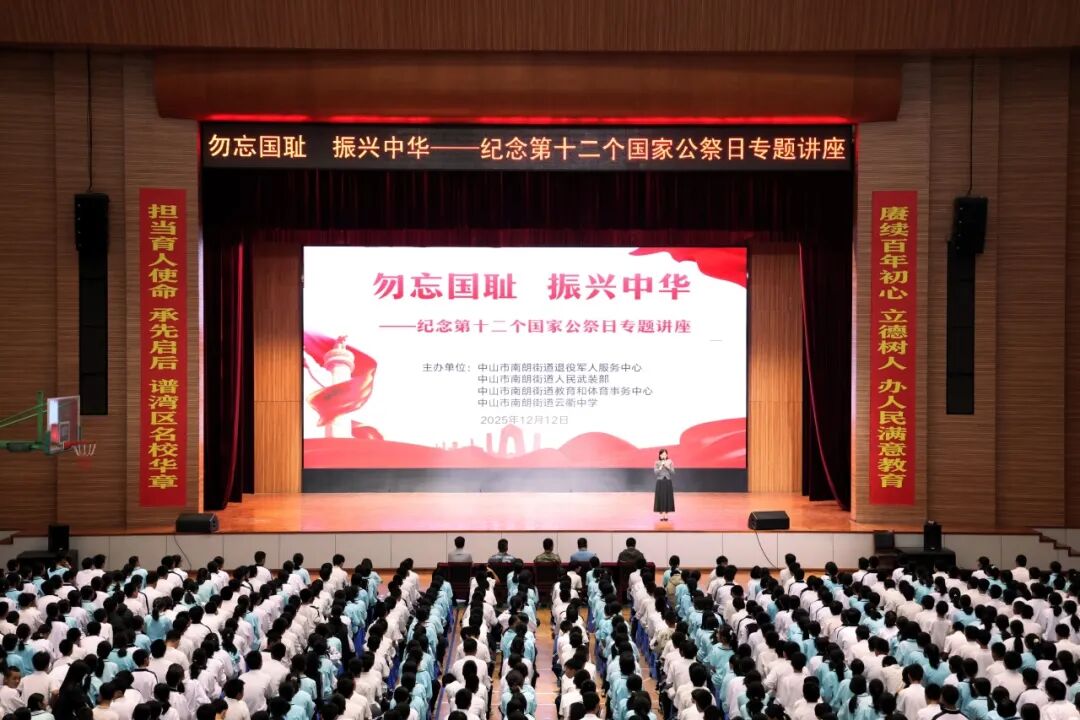 以史為鑒,砥礪前行。在第十二個南京大屠殺死難者國家公祭日即將到來之際,12月12日下午,中山南朗街道人民武裝部、退役軍人服務(wù)中心聯(lián)合南朗街道教育和體育事務(wù)中心在中山紀(jì)念中學(xué)教育集團(tuán)云衢中學(xué)開展愛國主義教育,700余名師生齊聚一堂,緬懷遇難同胞、傳承愛國精神。