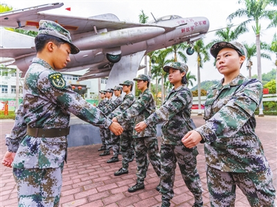 “向右看齊!向前看!現(xiàn)在教你們軍人隊列動作中的脫帽戴帽要領(lǐng)……”3月21日下午,在中山市國防教育基地訓(xùn)練場上,一支七人訓(xùn)練小隊顯得格外特別,她們是今年上半年應(yīng)征入伍的中山女兵:梁晶、馮妙瑩、藍宇瑩、陳琬琪、溫黎嘉茵、劉燕彤、蘇汶詩。 她們都是00后女大學(xué)生,身著迷彩服,精神抖擻地在教官羅偉進的帶領(lǐng)下有序而緊張地開展隊列訓(xùn)練。“七朵金花”青澀稚嫩的臉上寫滿了對軍旅生活的向往和期待。她們將通過幾天的役前教育訓(xùn)練,邁出軍旅生活第一步。 ■五次報名應(yīng)征終圓夢 七朵金花中,沙溪鎮(zhèn)占據(jù)兩席名額,她們分別是藍宇瑩和劉燕彤。沙溪鎮(zhèn)武裝部工作人員劉偉立說:“從歷年來看,這次是我們鎮(zhèn)出女兵人數(shù)最多的一次。其中,龍聚環(huán)村民小組更是出兵大戶,幾乎每年都有男女兵從這里出?!?/p> 身高1.7米的劉燕彤就來自沙溪鎮(zhèn)樂群村(龍聚環(huán)村民小組),就讀于廣東海洋大學(xué),是一名大二學(xué)生。“我記憶中每次村里有人當(dāng)兵入伍,都會舉行隆重的送兵儀式,整個村子鑼鼓喧天鞭炮齊鳴,還有舞獅表演助陣,好熱鬧。很小的時候我就覺得當(dāng)兵很威風(fēng)很光榮,在我心里也就埋下了要當(dāng)兵的種子?!眲⒀嗤f:“我對部隊生活充滿了期待,進入部隊后我希望自己能考上軍校留在部隊長期發(fā)展?!?/p> 藍宇瑩來自沙溪鎮(zhèn)匯源社區(qū),就讀于廣東技術(shù)師范大學(xué),是一名大三學(xué)生。她曾在網(wǎng)上報名應(yīng)征了5次,可見其參軍入伍決心之大?!拔覐男【秃艹绨蒈娙?,從小學(xué)一直到大學(xué)都是學(xué)校國旗護衛(wèi)隊的隊員?!彼{宇瑩表示,幸運的是今年3月份,自己終于圓夢軍營即將前往某戰(zhàn)區(qū)海軍服役。 藍宇瑩的母親錢梅香表示:“我非常支持女兒的決定,感覺入伍對女生來說是一種很好的鍛煉。如果有機會,我還想讓小兒子上大學(xué)后也進入部隊參軍報國,向姐姐學(xué)習(xí)?!?/p> ■對軍營生活充滿期待 七朵金花中,來自南朗街道下沙村的馮妙瑩就讀于廣東醫(yī)科大學(xué),今年6月份大學(xué)畢業(yè)?!拔覀冏黾议L的就是希望她入伍后好好干,加油努力。”馮妙瑩的父親不善言辭,非常支持女兒的從軍決定,“我年輕時也想當(dāng)兵,但身體條件不合格,錯失了機會?!?/p> “我大一就加入了學(xué)校國旗護衛(wèi)隊,通過日復(fù)一日的隊列訓(xùn)練,開始向往激情如火的軍營生活?!瘪T妙瑩告訴記者,“對即將到來的部隊生活,既期待又有點擔(dān)心。擔(dān)心去到一個陌生的環(huán)境會不適應(yīng),但既然選擇了這條路,我一定會克服困難,堅持下去,爭取留在部隊發(fā)展,早日成為一名優(yōu)秀軍人。” 來自民眾街道的梁晶就讀于南華大學(xué),今年6月即將大學(xué)畢業(yè)。她剛進入大一就提交了入黨申請書,2022年正式成為一名共產(chǎn)黨員。梁晶說:“2021年河南特大暴雨期間,通過新聞媒體看到中國軍人逆流而上,連夜出征轉(zhuǎn)移群眾的場景讓我深受感動。那時起,我就萌生了參軍的想法。”幸運的是,她今年終于圓夢軍營,她表示:“面對未知的軍營生活,我已經(jīng)作好了心理準備。進入部隊后,我一定會好好適應(yīng),有信心能在部隊干好?!?/p> 臨近傍晚,一天的訓(xùn)練就要結(jié)束了,中山市國防教育基地門口上方一條寫著“保家衛(wèi)國終不悔,綠色軍營獻青春”的紅色橫幅迎風(fēng)招展,不遠處的軍營生活正等著中山這“七朵金花”的到來,她們也在憧憬著…… 記者 張倩 ◆編輯:龍慧◆二審:鄭沛鋒◆三審:周亞平 |
