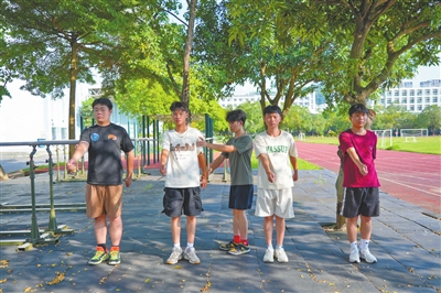 鐘鑫引導(dǎo)同期參軍的另外4名大學(xué)畢業(yè)生進行體能訓(xùn)練。記者 易承樂 攝