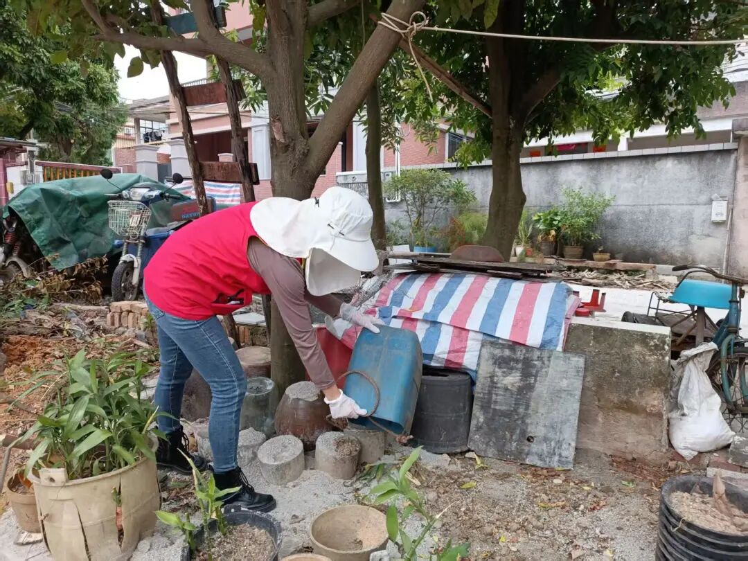愛國衛(wèi)生運(yùn)動同步推進(jìn),為“兩熱”防控打下堅(jiān)實(shí)基礎(chǔ)。結(jié)合“百千萬工程”人居環(huán)境整治要求,翠亨新區(qū)(南朗街道)掀起全員參與的環(huán)境整治熱潮:黨員干部率先帶頭沖鋒,志愿者與村(居)民積極響應(yīng)跟上,大家齊心協(xié)力清理衛(wèi)生黑點(diǎn)、清運(yùn)各類垃圾、清拆亂搭亂建,還對公共區(qū)域的積水進(jìn)行“拉網(wǎng)式”排查清理。通過清理雜亂的角落和積水的盆栽,轄區(qū)巷道變得整潔、院落變得清爽,環(huán)境面貌大為改觀,從源頭徹底鏟除了蚊蟲孳生的“溫床”。