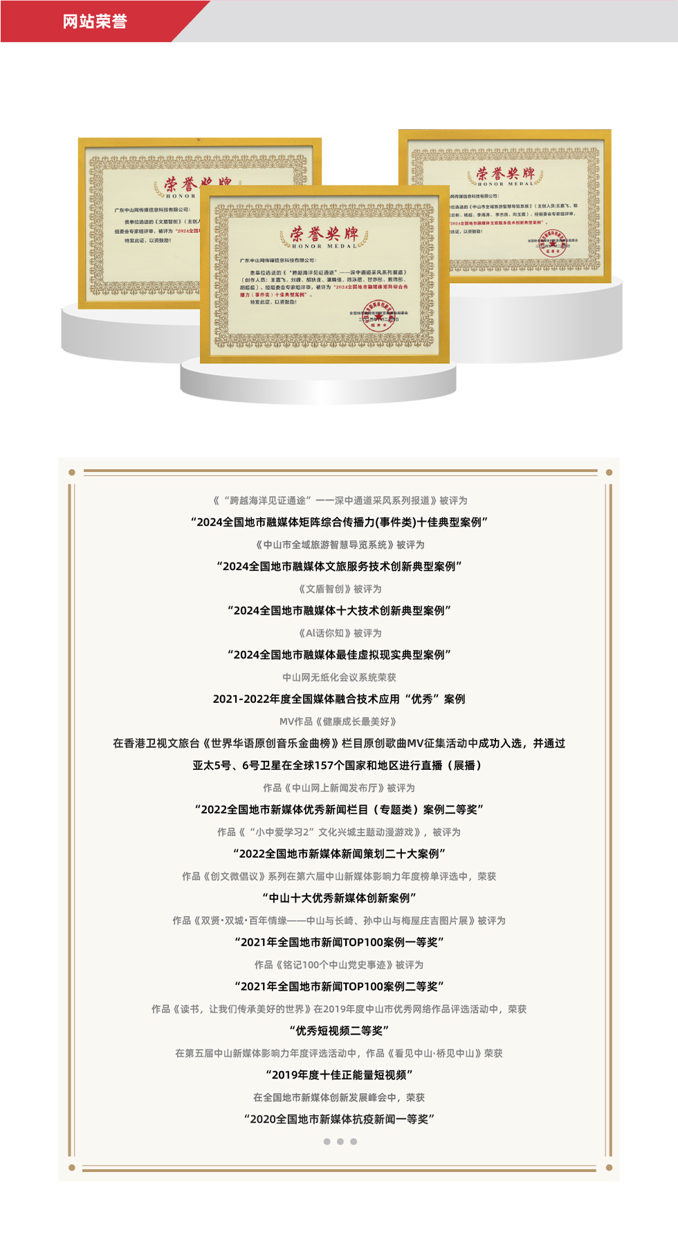 為積極響應(yīng)國(guó)家文化體制改革,2012年中山網(wǎng)信科應(yīng)運(yùn)而生,是中山日?qǐng)?bào)社全資一級(jí)企業(yè)。經(jīng)過十多年的發(fā)展,中山網(wǎng)信科已成長(zhǎng)為國(guó)家高新技術(shù)企業(yè)、廣東省專精特新中小企業(yè),擁有互聯(lián)網(wǎng)新聞信息服務(wù)許可證、信息網(wǎng)絡(luò)傳播視聽節(jié)目許可證、增值電信業(yè)務(wù)經(jīng)營(yíng)許可證等國(guó)家、省、市級(jí)行業(yè)許可,是本地證照最為齊全的新聞機(jī)構(gòu)之一。