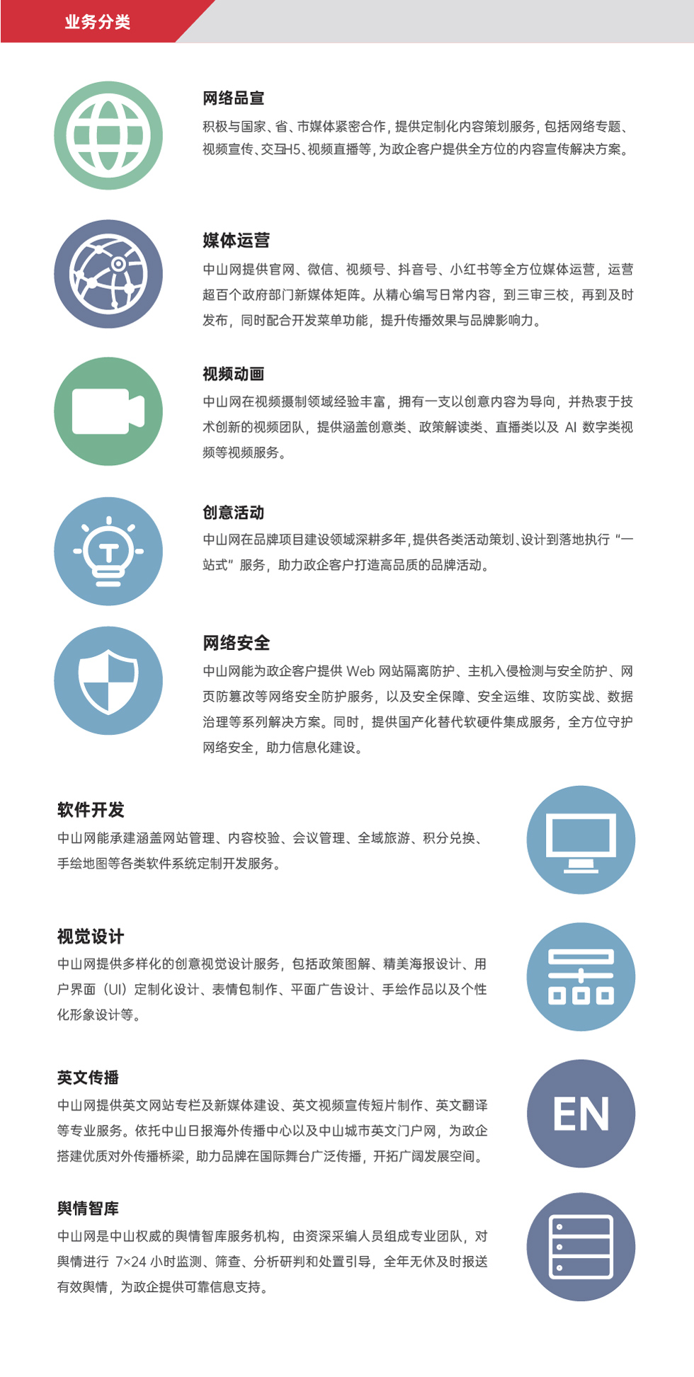 廣東中山網(wǎng)傳媒信息科技有限公司(簡(jiǎn)稱中山網(wǎng)信科)是一家以本地新聞門戶網(wǎng)站——中山網(wǎng)為平臺(tái),以新聞資訊、視頻動(dòng)畫、媒體運(yùn)營(yíng)、輿情智庫(kù)、網(wǎng)站建設(shè)及運(yùn)維服務(wù)和網(wǎng)絡(luò)安全技術(shù)服務(wù)為主營(yíng)業(yè)務(wù)的互聯(lián)網(wǎng)綜合信息及技術(shù)服務(wù)運(yùn)營(yíng)商。