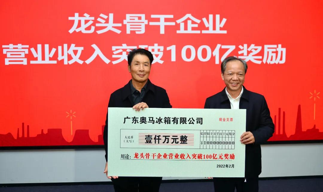 廣東奧馬冰箱有限公司是全球最大的冰箱ODM生產(chǎn)企業(yè),連續(xù)13年成為中國冰箱出口冠軍。去年底的一次調(diào)研,郭文海勉勵奧馬加快打造百億級企業(yè),并承諾目標(biāo)實現(xiàn)時前來為企業(yè)慶賀。2021年,奧馬不負(fù)眾望,營業(yè)收入超101億元,同比增長17%,首次突破百億大關(guān),繳納稅收5.5億元。