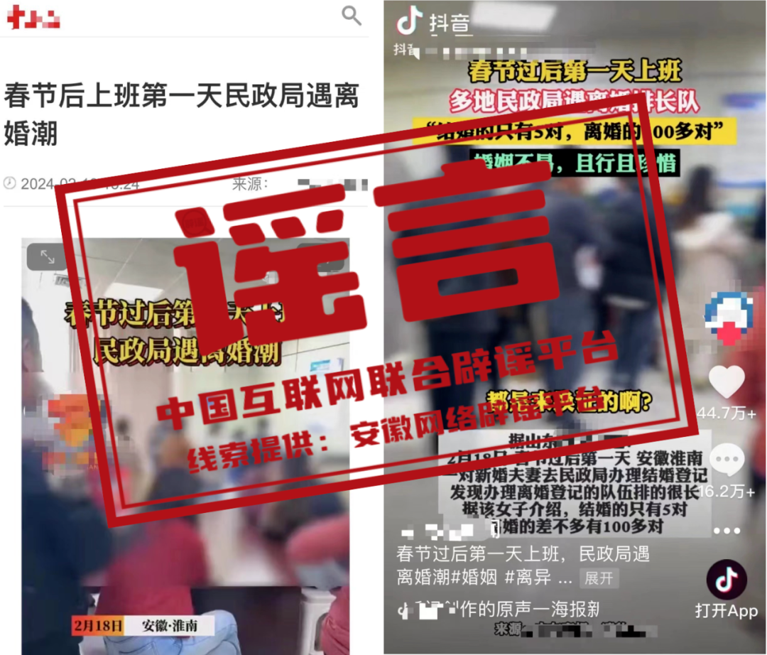 謠 言  春節(jié)后上班第一天安徽淮南有民政局遇“離婚潮”?