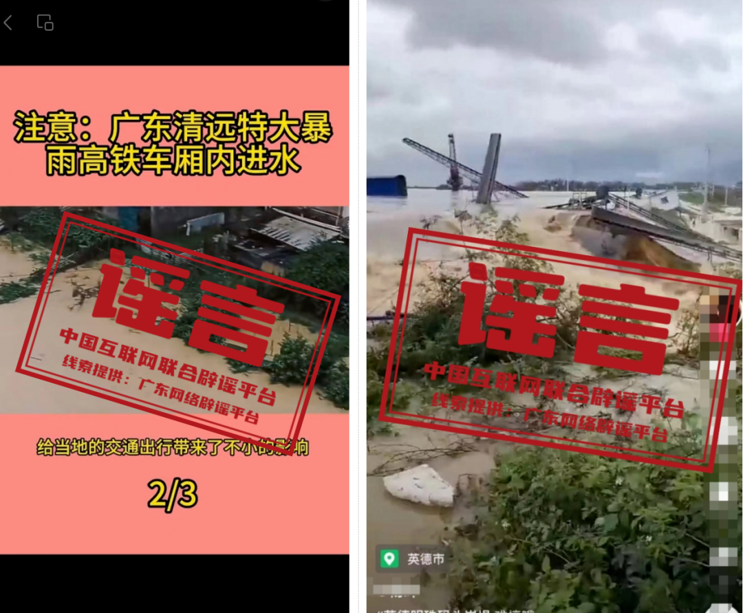 謠  途經(jīng)廣東清遠(yuǎn)的高鐵車(chē)廂進(jìn)水?清遠(yuǎn)英德洪水致碼頭崩堤?