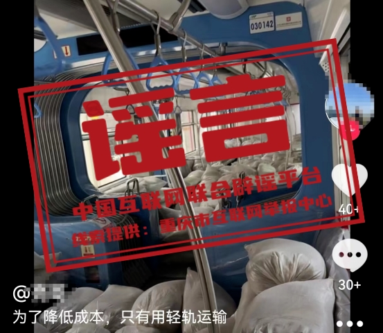 真相:近日,有網(wǎng)民發(fā)布一段重慶軌道3號線車廂裝沙現(xiàn)場視頻,并配文稱“為降低成本,使用軌道載貨”,引發(fā)關(guān)注。經(jīng)向重慶軌道交通集團(tuán)核實,該信息為謠言。網(wǎng)傳視頻中的軌道03014車,系重慶軌道交通3號線第二批“六改八”及大修車輛,目前該列車已完成“六改八”項目改造及大修工作。按照交通運輸部相關(guān)規(guī)定,該列車必須通過綜合性的型式試驗,測試列車的各項牽引、制動等性能合格之后方可投入運營。網(wǎng)民發(fā)布的視頻內(nèi)容即為6月30日03014車通過裝載沙袋,模擬最大載客量來測試列車的各項性能。(來源:“重慶辟謠”微信公眾號)