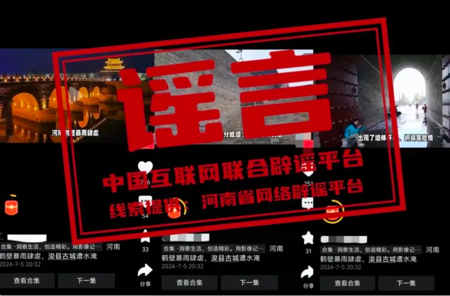 真相:近日,有網(wǎng)民在網(wǎng)絡(luò)平臺(tái)發(fā)布內(nèi)容為“河南鶴壁暴雨肆虐,??h古城遭水淹”的視頻信息,引發(fā)社會(huì)關(guān)注。經(jīng)核實(shí),7月5日??h出現(xiàn)暴雨天氣,強(qiáng)降雨期間??h古城北大街、東城門(mén)廣場(chǎng)等處出現(xiàn)積水情況,經(jīng)過(guò)積極排澇,雨停后路面積水很快被排空,恢復(fù)正常通行,不存在視頻中所說(shuō)的“古城風(fēng)貌受損嚴(yán)重”“古城內(nèi)的部分城墻、古街巷出現(xiàn)不同程度的損毀”“古城墻出現(xiàn)了墻體開(kāi)裂、坍塌等險(xiǎn)情”“古城內(nèi)的博物館、紀(jì)念館等文化設(shè)施也遭受不同程度的損失”等現(xiàn)象。該視頻多為當(dāng)?shù)嘏f聞及外地視頻嫁接拼湊。目前,??h古城秩序正常。(來(lái)源:河南省網(wǎng)絡(luò)辟謠平臺(tái)、??h古城保護(hù)建設(shè)服務(wù)中心)