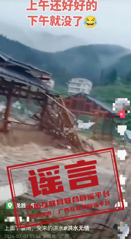 辟 謠 桂林一處風雨橋被洪水沖毀?造謠!