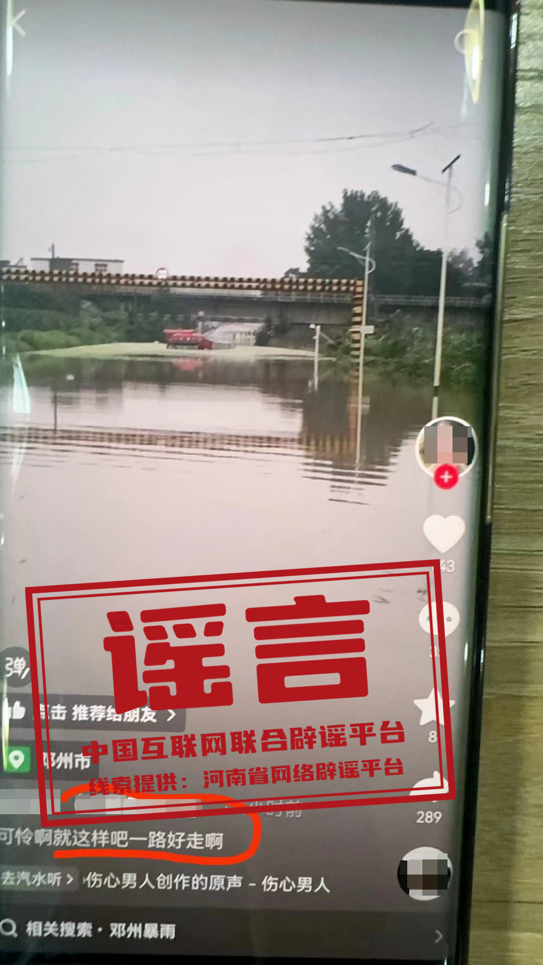 7月15日,網(wǎng)民“神x”在某短視頻平臺(tái)發(fā)布“貨車司機(jī)被淹”視頻,并配文稱“可憐啊,就這樣吧,一路好走”。經(jīng)核實(shí),7月14日,鄧州市鐵路橋下一外地牌照貨車被淹,車內(nèi)被困人員已被成功救出,無(wú)人員傷亡,該信息與事實(shí)嚴(yán)重不符,系虛假信息。