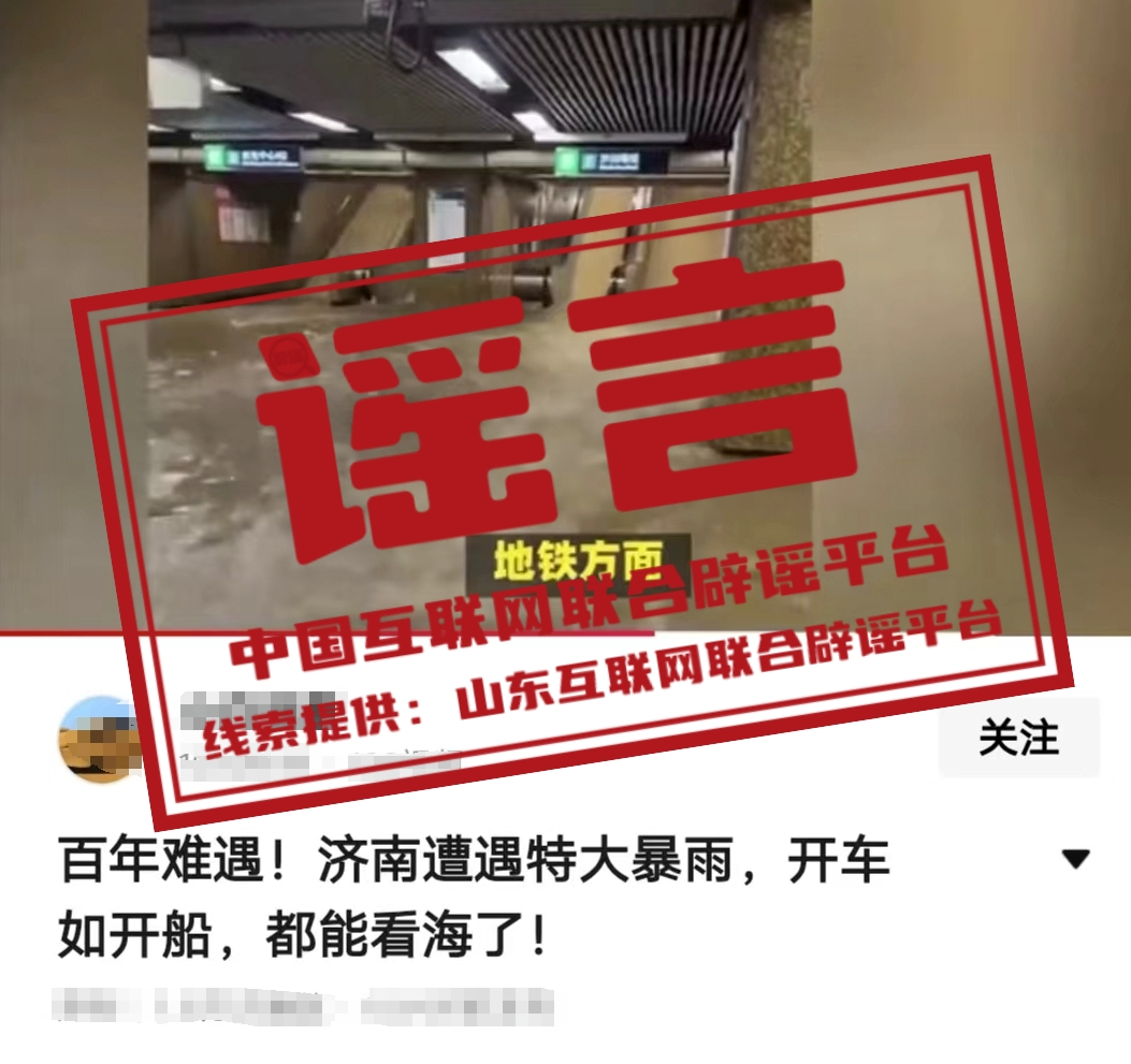 謠 言 濟南近日遭遇百年難遇特大暴雨?