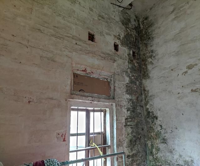 當(dāng)天下午,兩名向日葵社工來(lái)到了阿耿家中,阿耿看到社工的到來(lái),仿佛看到了希望的曙光。阿耿家非常的破舊,是一幢年久失修的紅磚房,門(mén)窗都是木頭制成的,已經(jīng)破爛不堪。進(jìn)到房子里面,看到阿耿現(xiàn)在是把廚房用具搬到了客廳,本來(lái)就小的客廳顯得更加的擁擠。幾句寒暄過(guò)后,阿耿帶社工去到出現(xiàn)漏水情況的房間,一進(jìn)到房間,社工就發(fā)現(xiàn)房間墻身已經(jīng)出現(xiàn)了非常嚴(yán)重的發(fā)霉情況,甚至有部分墻壁還長(zhǎng)出了青苔,阿耿說(shuō):“這已經(jīng)出現(xiàn)很長(zhǎng)一段時(shí)間了,前段時(shí)間下雨,墻壁一直滲水,這個(gè)房間原本是我住的房間,因?yàn)闈B水情況越來(lái)越嚴(yán)重,就搬到旁邊原來(lái)作為廚房的房間居住,而且窗戶的玻璃都已經(jīng)全部掉落了,現(xiàn)在這個(gè)房間已經(jīng)完全不能住人了?!卑⒐⒄f(shuō)完,就告訴社工還有另一處漏水的地方??吹搅硪惶幝┧牡胤剑绻ぐl(fā)現(xiàn)墻壁因長(zhǎng)期滲水導(dǎo)致墻面剝落且墻體分離,到處都是霉斑。阿耿表示,這是漏水情況最嚴(yán)重的房間,房子的其他地方也出現(xiàn)了不同程度的漏水,隨后,阿耿把社工帶到客廳,把其他漏水的地方和情況也向社工反饋。社工看到阿耿現(xiàn)在居住在如此破爛的房子,不禁感到一陣酸楚,同時(shí)也跟阿耿商討著怎樣去解決漏水的問(wèn)題。