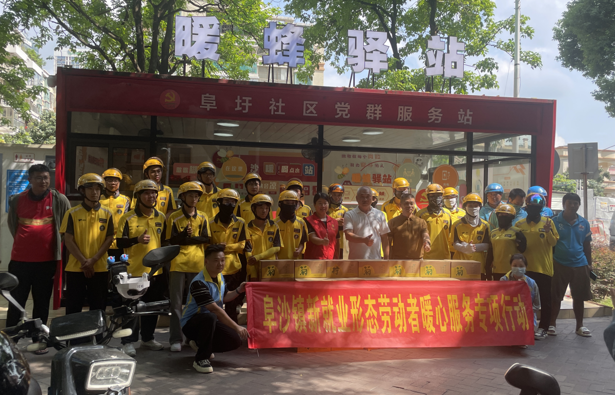 為進(jìn)一步提升新業(yè)態(tài)群體識(shí)毒、防毒意識(shí)與能力,8月13日上午,阜沙鎮(zhèn)平安法治辦聯(lián)合阜沙鎮(zhèn)總工會(huì)在阜圩社區(qū)暖蜂驛站開展新業(yè)態(tài)勞動(dòng)者暖心服務(wù)暨禁毒宣傳進(jìn)萬家活動(dòng)。鎮(zhèn)人大主席梁元輝出席了本次活動(dòng),活動(dòng)共為60余名美團(tuán)、餓了么、京東騎手送上防暑物資與禁毒知識(shí)“雙料禮包”,并吸引了眾多居民群眾駐足觀看參與。