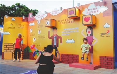 主題活動現(xiàn)場氣氛火熱,各項互動游戲備受歡迎,尤其是歐洲杯快樂操場環(huán)節(jié),豐富的足球元素讓不少體育迷和小朋友流連忘返,紛紛拿出手機留影;“頂”起來拍照墻,歡樂氣氛十足的互動區(qū)域,讓參與其中的市民充分感受體育的魅力。