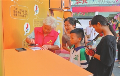 工作人員現(xiàn)場向市民發(fā)放宣傳資料。
