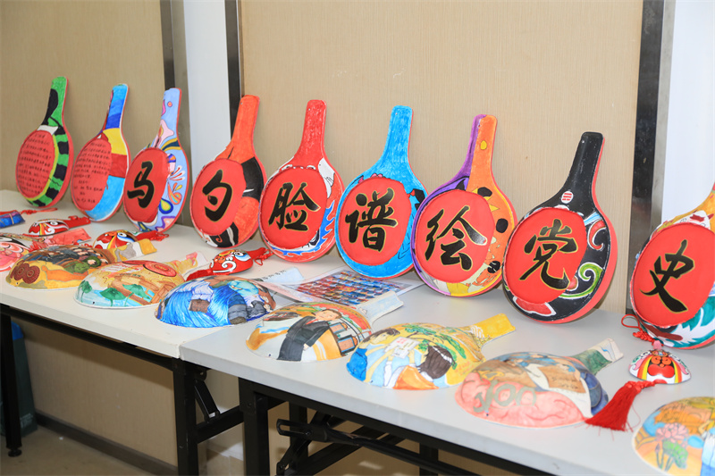 中國共產黨成立100周年標識、井岡山勝利會師、南昌起義、嘉興游船上舉行的中共一大、萬里長征路……分享會現(xiàn)場,刻畫了一個個黨史故事的木瓢排列成行,十分引人注目?!斑@是國家級非物質文化遺產——馬勺臉譜。它是陜西的傳統(tǒng)民間藝術,以馬勺作‘紙’,將社火臉譜以彩繪的形式繪制在上面?!瘪R勺臉譜傳承者、沙溪中學老師馬世杰介紹。作為一名美術老師,馬世杰通過民間藝術的再創(chuàng)新來引導學生學習黨史,在他的帶領下,沙溪中學的學生將南粵特色、中山元素、國風動漫等融入馬勺臉譜的創(chuàng)作中?!袄L制黨史故事前,我們查閱了大量資料,并向專家學者請教,在創(chuàng)作中引導學生們了解、學習黨史?!?/p>