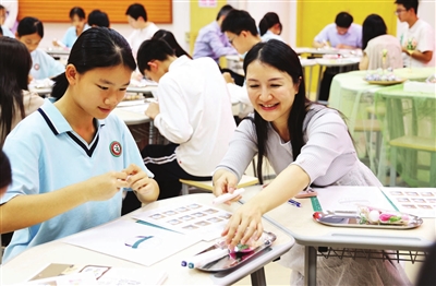 “香港也有類似課程,但中山的課程更強(qiáng)調(diào)這個(gè)作品背后的情感價(jià)值,同時(shí),學(xué)生會(huì)將作品送給父母或摯友,學(xué)習(xí)動(dòng)力自然被‘點(diǎn)燃’?!痹诂F(xiàn)場(chǎng),莊嘉璐對(duì)課程點(diǎn)贊道。