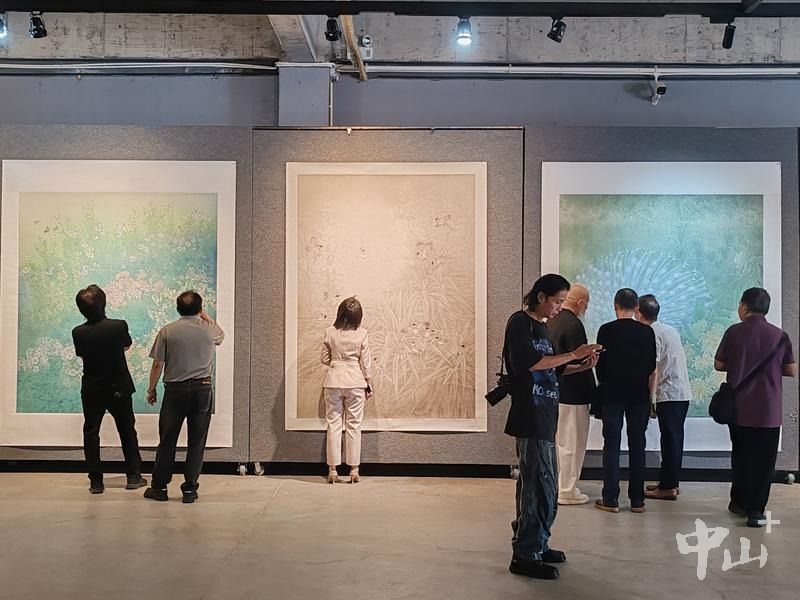 “澄懷觀道,墨韻南朗——杜源吉、黃紹武國畫作品展”在翠亨大石門美術(shù)館開幕。見習(xí)生 周昊? 攝