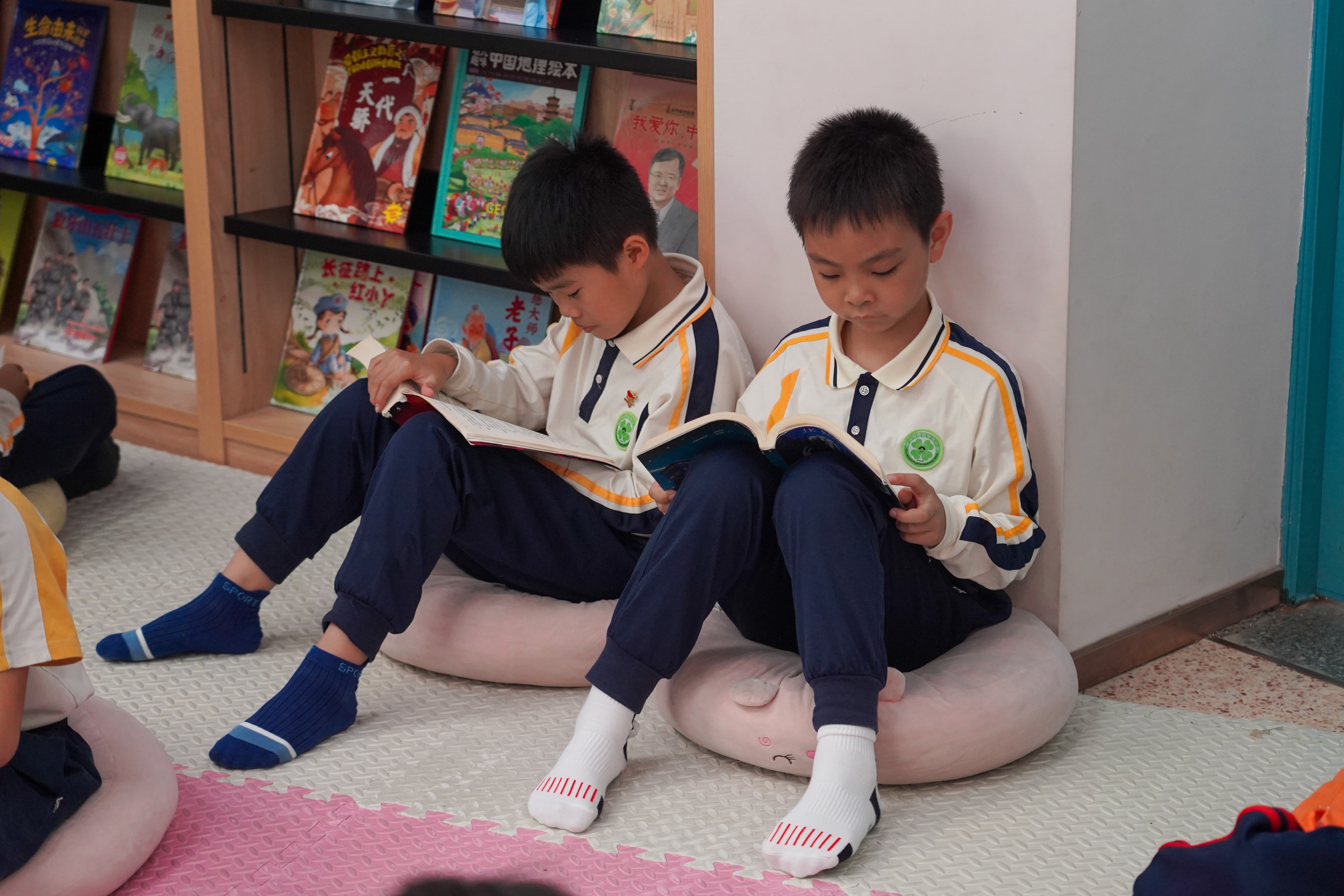 讀書節(jié)的熱度從不褪色,一系列特色活動貫穿全年:“書香班級”評選激發(fā)集體閱讀動力,讓班級成為書香傳遞的小單元;“書架漂流”活動讓書籍在班級間、同學間流動,實現(xiàn)“一書多讀、共享書香”。“我最喜歡書房開展的‘繪本漂流’活動,學校會將繪本搬到教室,每周從一個班漂到另外一個班,班上所有同學人手一冊同樣的繪本,大家會一起討論書本的內(nèi)容和劇情,特別有趣?!绷昙墝W生段暢的分享,展現(xiàn)出活動的獨特魅力;“小小童話大世界”“名家講童書”等活動精準對接不同年級、不同興趣的學生群體,讓每個孩子都能找到屬于自己的閱讀樂趣。據(jù)統(tǒng)計,每學期參與各類閱讀活動的人次超一萬兩千,書屋內(nèi)外、校園各處,每天都在上演著與書相關的溫暖故事。?