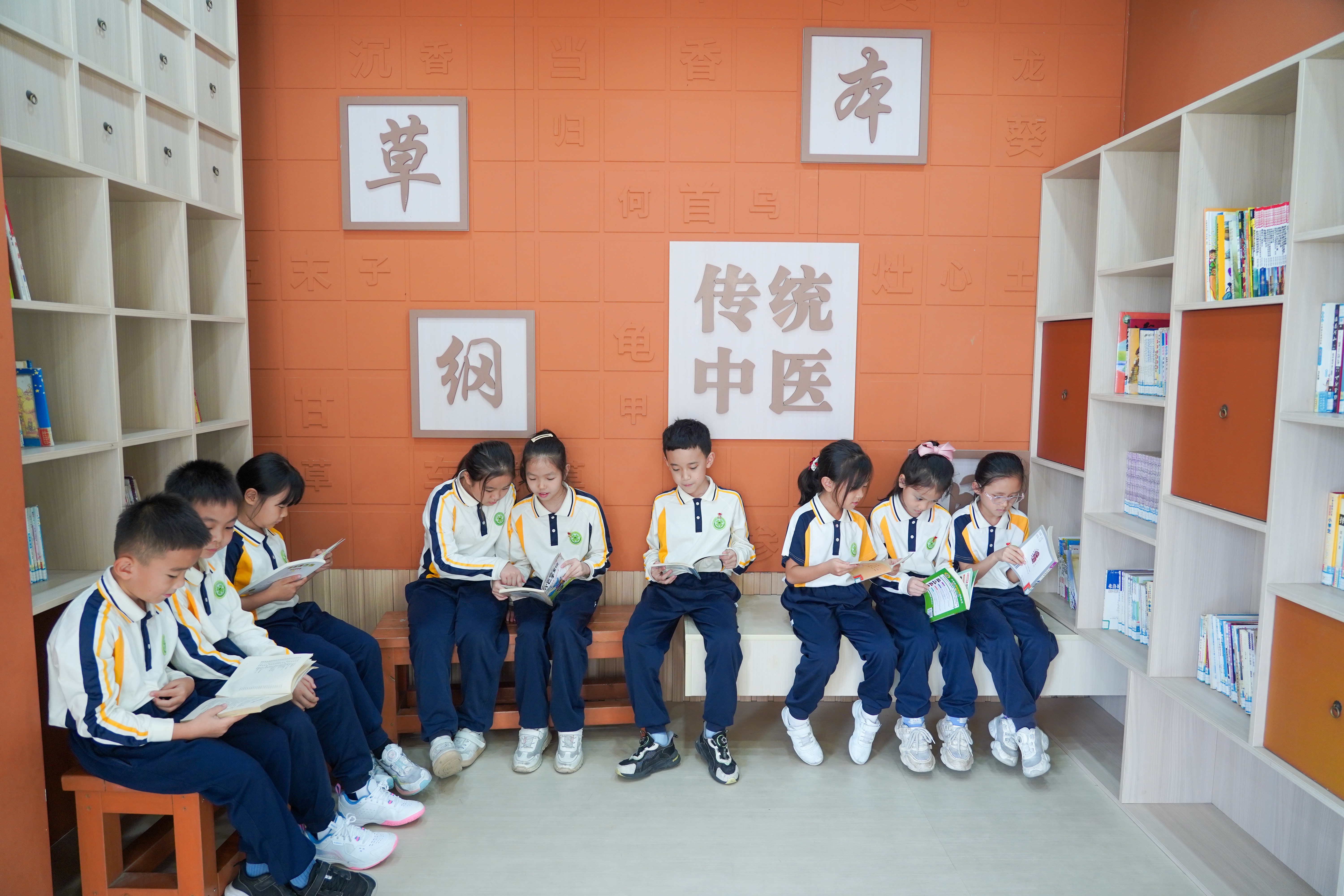 不僅如此,學校還將閱讀空間延伸至校園的每一個角落,每層教學樓都設有圖書角,且裝飾環(huán)境均圍繞不同文化主題進行打造。一樓圖書角以“校園文化”為裝飾主題,明黃色背景墻搭配學校向陽文化的教育理念,既醒目亮眼又盡顯生機活力;二樓圖書角聚焦“傳統(tǒng)文化”,墻面點綴“仁義禮智信”儒家箴言與“琴棋書畫”等雅致字樣,濃郁的古典韻味撲面而來;三樓圖書角將“二十四節(jié)氣”作為裝飾核心,書架上張貼著各節(jié)氣名稱,讓自然時序之美與閱讀時光巧妙相融;四樓圖書角則圍繞“中醫(yī)藥文化”展開設計,墻面凸起的常見草藥名稱,傳遞了中醫(yī)藥文化的內(nèi)涵。