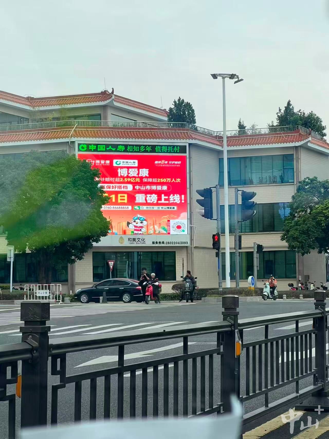 中山市中山三路一電子屏上播放“博愛康”的相關(guān)介紹。記者 楊健 攝