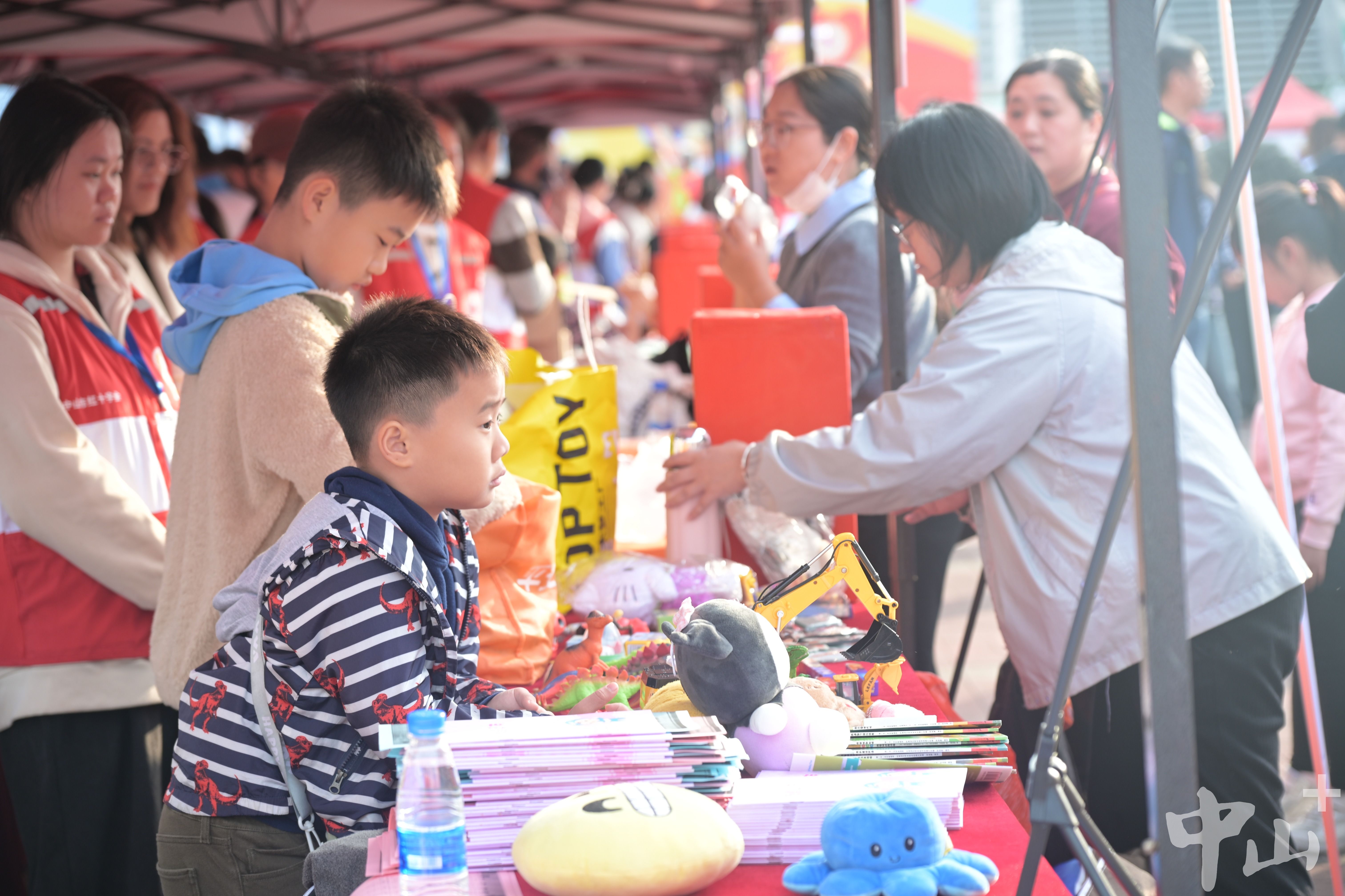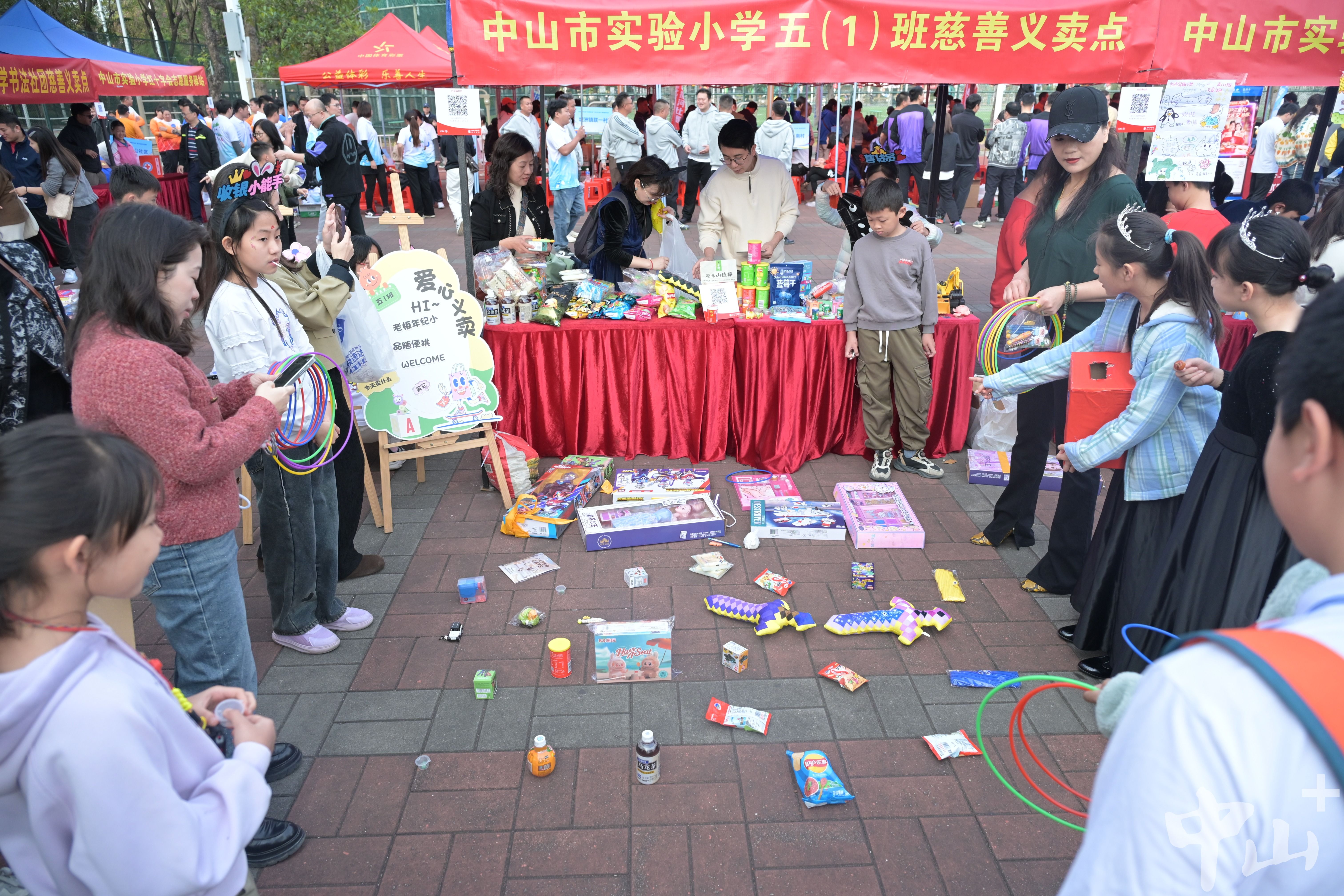 學(xué)生群體的身影成為現(xiàn)場(chǎng)一道亮眼的風(fēng)景線。中山市實(shí)驗(yàn)小學(xué)的攤位上,不僅有玩具套圈游戲,還擺放著各類書(shū)籍、玩偶,更有學(xué)生現(xiàn)場(chǎng)揮毫寫(xiě)對(duì)聯(lián),以筆墨傳遞愛(ài)心。校長(zhǎng)王文儒也來(lái)到現(xiàn)場(chǎng),帶頭選購(gòu)學(xué)生義賣品。王文儒說(shuō),自中山有慈善萬(wàn)人行義賣活動(dòng)以來(lái),學(xué)校便持續(xù)組織學(xué)生參與,本次共有20多個(gè)班級(jí)參展,義賣物品都是全校師生捐贈(zèng)的?!拔覀兿Mㄟ^(guò)這種方式,將中山的博愛(ài)精神根植于學(xué)生心中,同時(shí)為他們提供交換與售賣的實(shí)踐體驗(yàn),提升解決問(wèn)題的能力?!?/p>