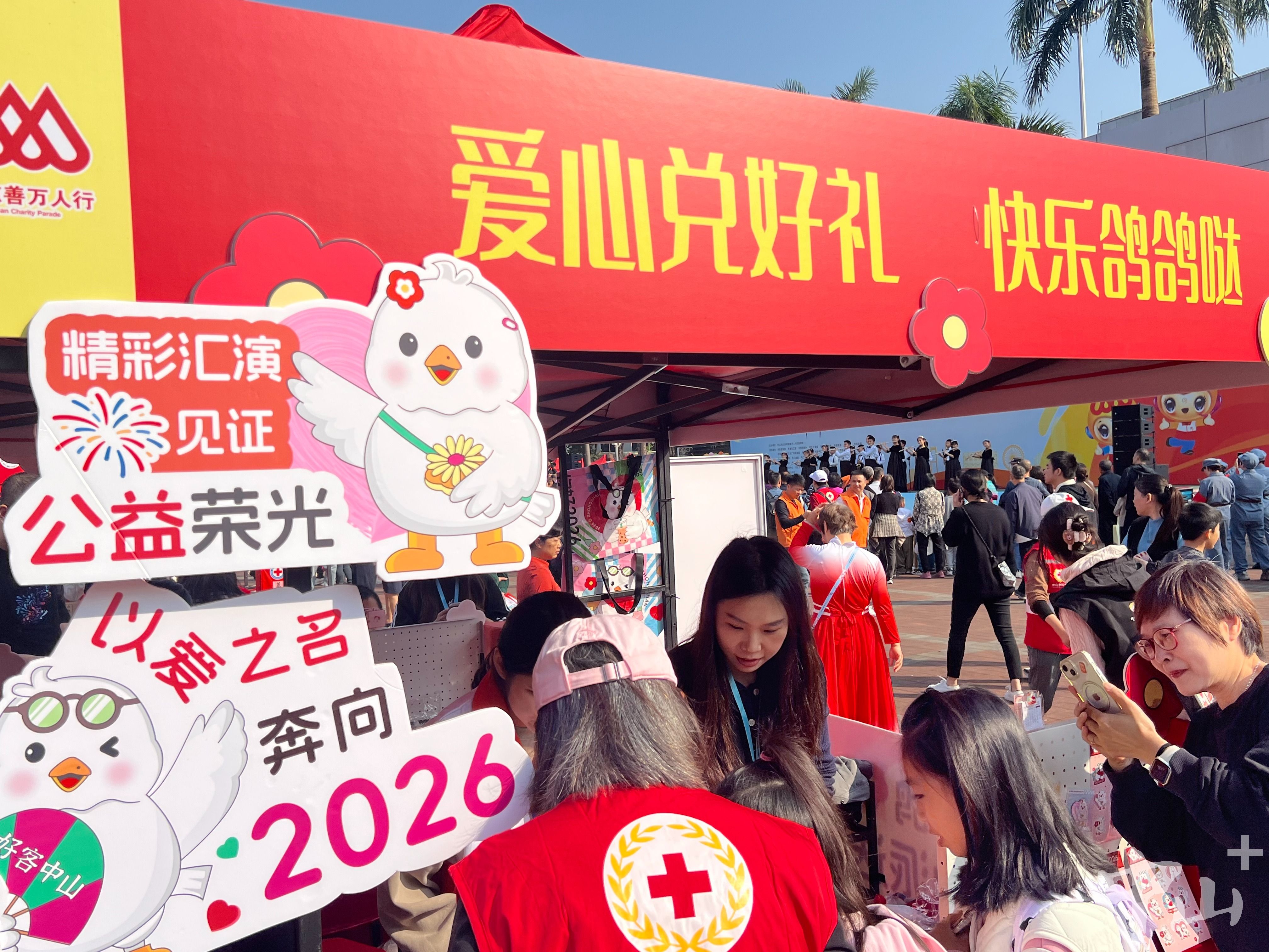 除了琳瑯滿目的義賣品外,現(xiàn)場(chǎng)各界文藝團(tuán)體輪番登臺(tái),帶來(lái)歌舞、朗誦、情景劇、粵曲演唱、旗袍走秀等民俗文化節(jié)目,讓博愛(ài)氛圍持續(xù)升溫。此外,由中山文旅集團(tuán)設(shè)計(jì)的一系列中山“好客小鴿"主題周邊文創(chuàng)也在義賣區(qū)設(shè)了愛(ài)心好禮兌換攤位,市民紛紛排隊(duì)拿著捐款截圖及互動(dòng)打卡章兌換這份精美文創(chuàng)。