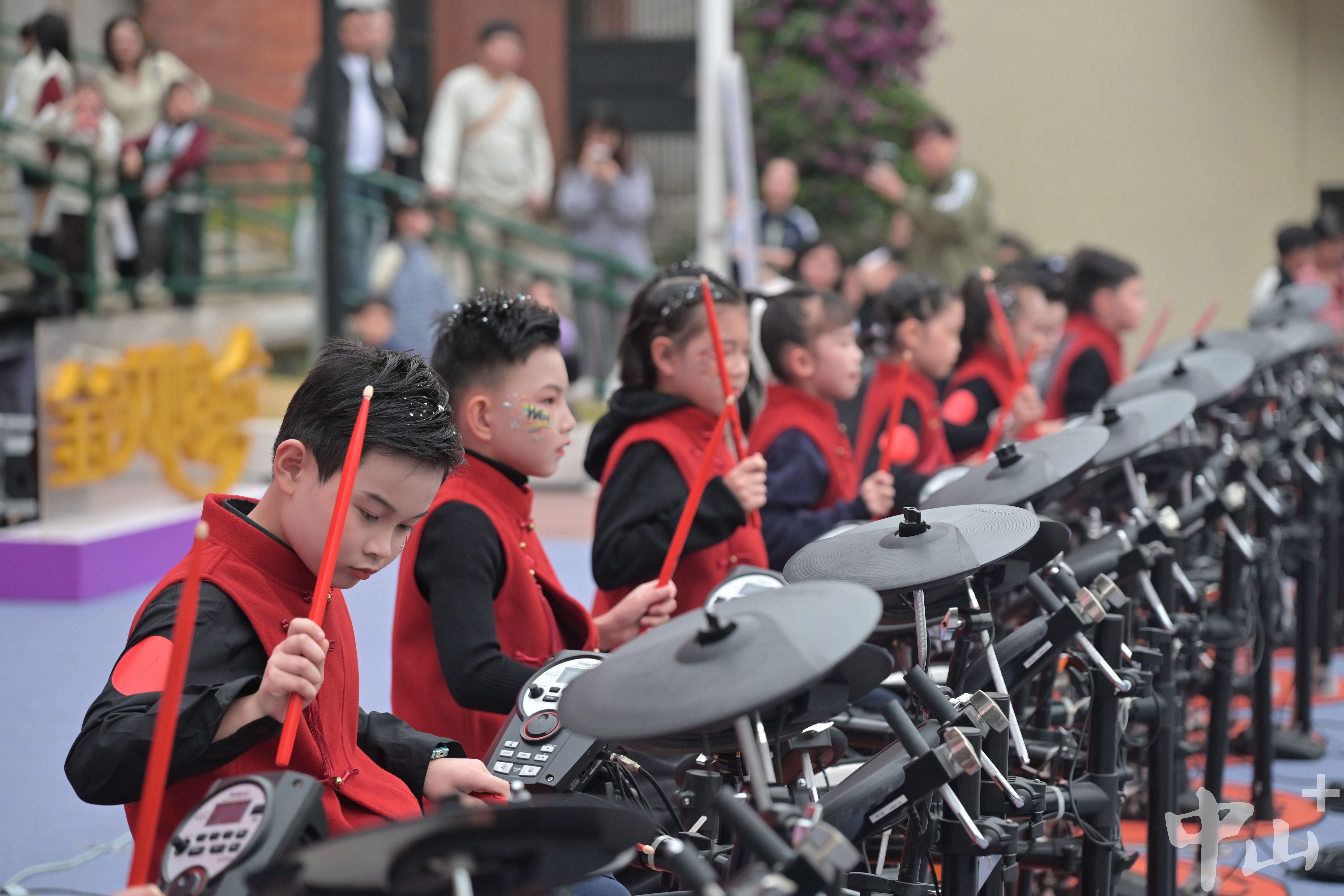 1月1日,中山市孫文西路步行街張燈結(jié)彩,涌動的人潮將整條街道的新年氛圍拉滿。下午2時許,孫文西路步行街內(nèi)的香山劇場搖身變?yōu)槁短煲魳肺枧_,“鼓動新年,聲生不息”2026元旦音樂會在此拉開帷幕,由中山羅蘭數(shù)字音樂教育精心選拔的百名青少年鼓手輪番登場,獻上活力滿滿的表演。作為石岐街道“香山為脈,潮起灣區(qū)”元旦系列活動的重要組成部分,給為期4天的30多項文旅活動注入了蓬勃的青春活力。