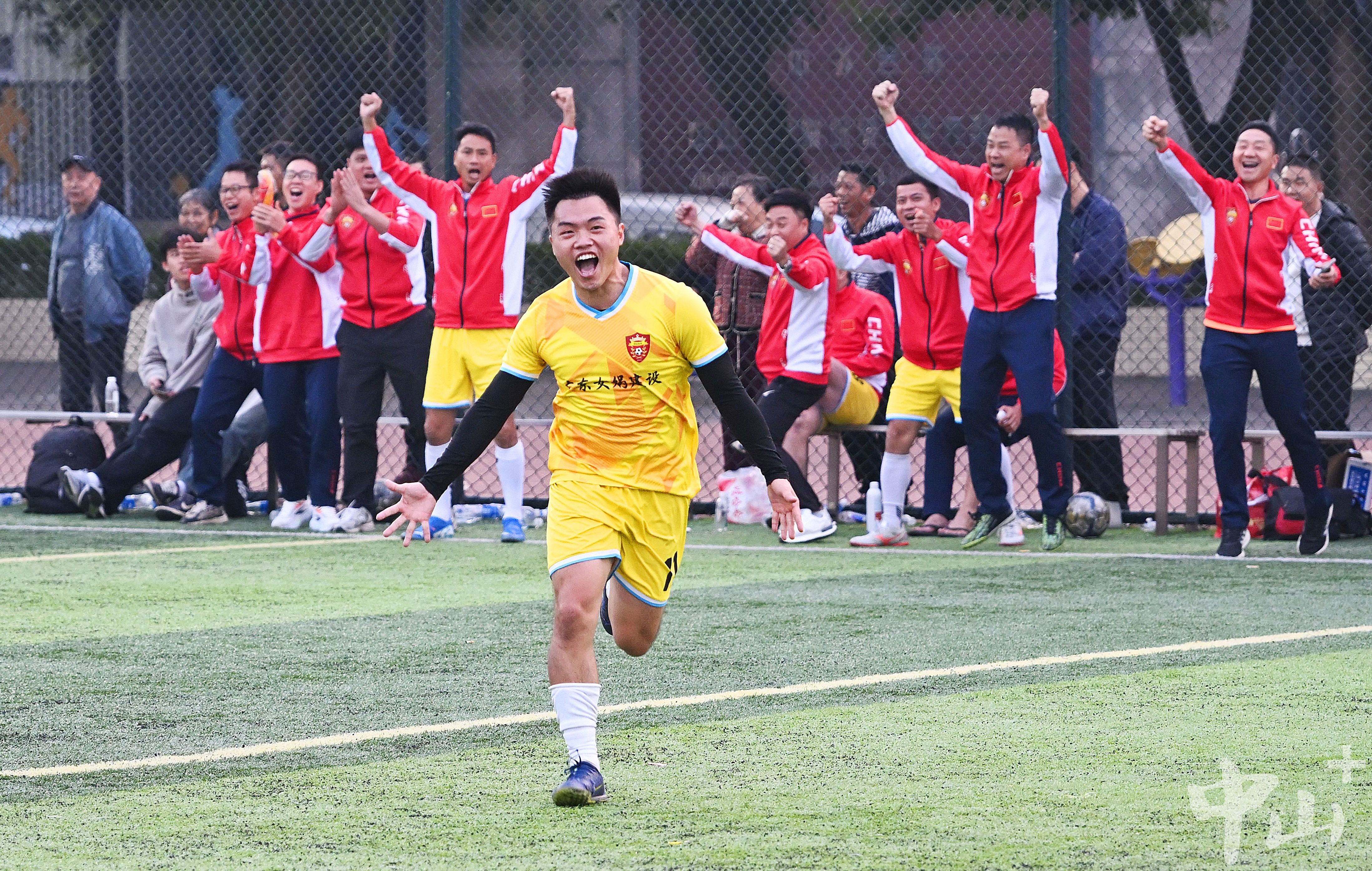 決賽中,一名球員取得進(jìn)球后,球員和觀眾齊歡呼。記者 夏升權(quán) 攝