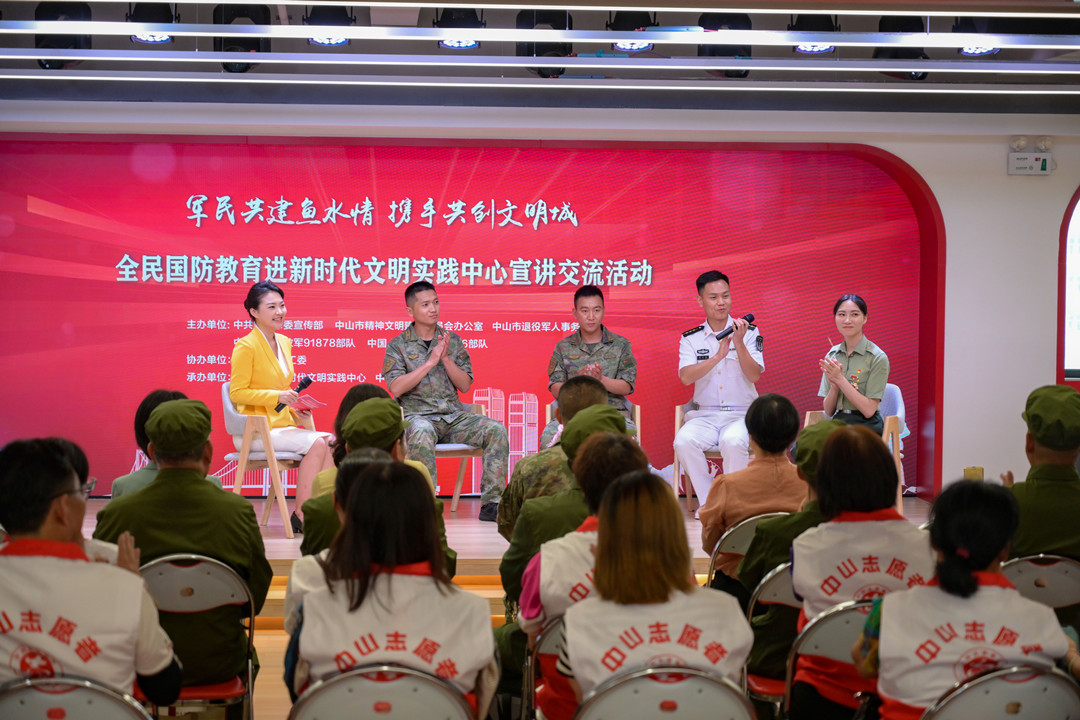 5月18日下午,全民國(guó)防教育進(jìn)新時(shí)代文明實(shí)踐中心宣講交流活動(dòng)在中山市民眾街道新時(shí)代文明實(shí)踐中心舉行,退役軍人代表、基層群眾、村干部以及受邀出席的中國(guó)人民解放軍91878部隊(duì)、69316部隊(duì)官兵代表等200余人參加活動(dòng)。   活動(dòng)現(xiàn)場(chǎng)。記者 易承樂(lè) 攝