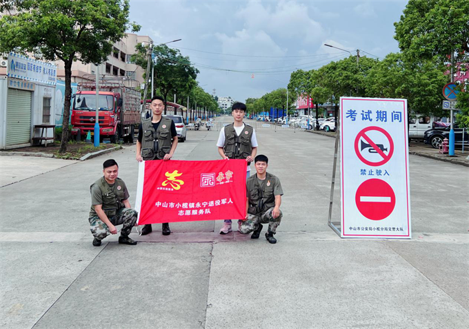 沙溪鎮(zhèn)退役軍人志愿者和民兵協(xié)助公安交警開(kāi)展高考護(hù)航工作。 7日早上7時(shí)許,在沙溪鎮(zhèn)寶珠東路龍山中學(xué)路口,多名退役軍人紅旗志愿服務(wù)隊(duì)隊(duì)員和民兵協(xié)助公安交警在路口設(shè)立警戒線,做好交通疏導(dǎo)、公共秩序維護(hù)、卡點(diǎn)值守等服務(wù),同時(shí)為考生及家長(zhǎng)提供礦泉水、應(yīng)急救援等服務(wù),給考生營(yíng)造一個(gè)安全、寧?kù)o、有序、文明的考試環(huán)境。 在中山市桂山中學(xué)門口,三鄉(xiāng)鎮(zhèn)退役軍人志愿者和民兵按照事先分工安排,分散在各個(gè)交通路口,有的拉警戒線,有的指揮車輛通行,有的疏散人群,有的負(fù)責(zé)在助力點(diǎn)發(fā)放礦泉水,他們精神抖擻,干勁十足,積極協(xié)助公安民警,做好考場(chǎng)周邊交通秩序維護(hù),確??荚嚻陂g考場(chǎng)周邊環(huán)境安靜有序。