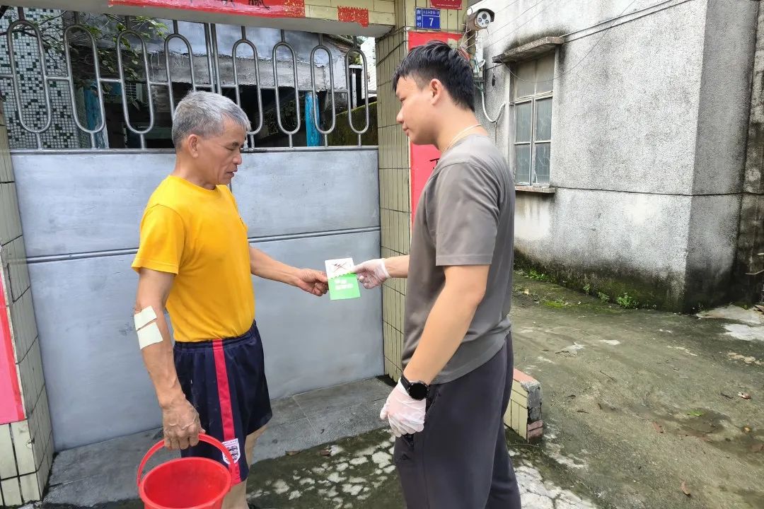 在部隊曾擔(dān)任副班長的他,對防疫工作格外上心,總想著把各項措施落實到位。走進村民家中,他一邊跟村民嘮家常,一邊念叨著防疫要點。為了讓老年村民更容易理解,孫桂濱把 “基孔肯雅熱” 簡稱為 “雅熱”:“不想中‘雅熱’就得防蚊蟲叮咬。沒積水就沒蚊蟲,沒蚊蟲就沒‘雅熱’啦!” 說著就幫村民檢查起家中的積水情況。 在中山南朗街道,像嚴(yán)兆雄、孫桂濱這樣的退伍軍人還有許多。他們曾是保家衛(wèi)國的 “最可愛的人”,如今依然是守護家園的 “防疫尖兵”。他們正用軍人的擔(dān)當(dāng)與堅守,為家鄉(xiāng)筑牢一道道健康防線。