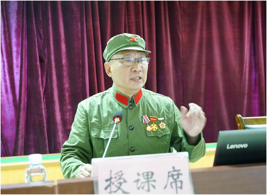 參戰(zhàn)老兵李克為準(zhǔn)新兵上“紅色教育”課。 “希望你們迅速融入軍隊(duì)這個(gè)大熔爐,勇敢接受艱苦環(huán)境的磨練和考驗(yàn),為我國(guó)的國(guó)防事業(yè)作出積極的貢獻(xiàn)!”曾在邊境自衛(wèi)反擊戰(zhàn)中榮立戰(zhàn)時(shí)三等功的副營(yíng)職轉(zhuǎn)業(yè)干部鄭志淦對(duì)準(zhǔn)新兵們提出了殷切希望。