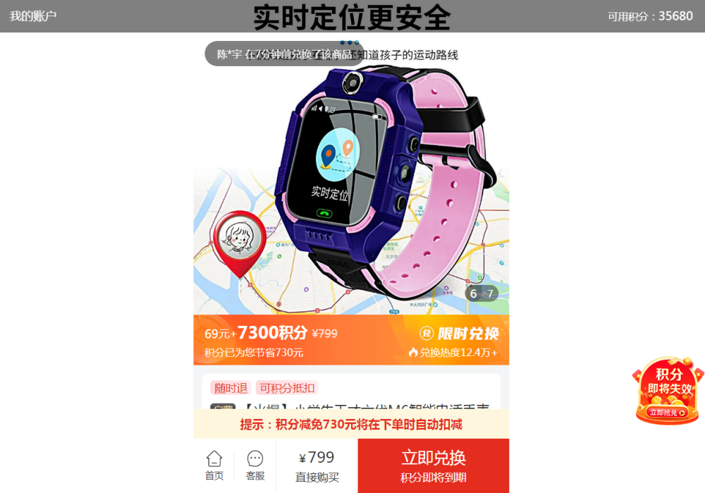 河南消費者馮先生說,前些日子收到一條短信,“說我有3萬多積分將在次日過期,并提供了兌換鏈接,署名‘服務通知’。”馮先生誤以為是移動運營商的提醒,隨即點開鏈接,以現(xiàn)金加7300積分為孩子購買了“價值”799元的“天才M6智能電話手表”。收到后發(fā)現(xiàn)手表做工低劣,兩小時就沒電了,且無法退貨。