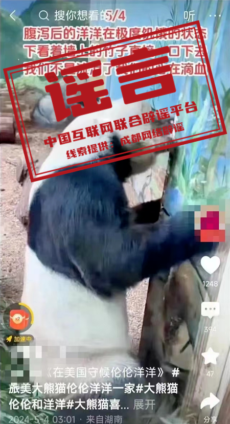 謠  旅美大熊貓“洋洋”口吐白沫、餓得啃墻皮?