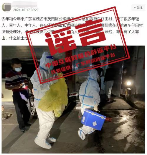 謠 言 廣東茂名某地有疫情和登革熱病毒,“死了很多人”?
